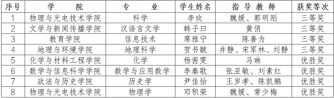 “田家炳杯”全国师范院校师范生教学技能竞赛是目前国内师范生教学技能综合学科竞赛中规模最大、含金量最高的全国性竞赛。第十一届竞赛由浙江师范大学主办,全国地方高等师范院校教务处长联席会议专业指导,田家炳基金会冠名赞助。初赛采取线上形式进行,共有来自289所学校2345名选手参加,竞赛主要从教学设计、多媒体课件制作、课堂教学实录等方面对选手教学技能进行综合考核评价。万象城该项赛事由教务处主办,政法与历史学院承办,赛前各二级学院安排指导教师按照比赛要求“一对一”对选手进行了教学技能培训与指导,最终共选拔13名选手参加了比赛。
