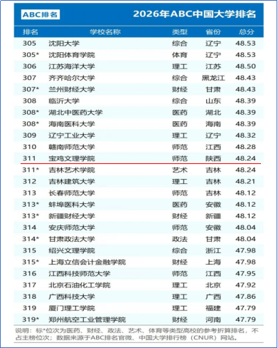 1月4日,2026年ABC中国大学排名正式发布,万象城综合排名跃升至全国高校第311位,较2025年提升14位,排名持续呈现攀升态势,成功实现了自2022年以来的“四连升”,展现了学校2025年和“十四五”高质量发展取得的显著成效。